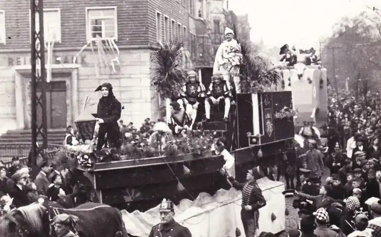 Auch der Rosenmontagszug war gut organisiert und aus der Erfahrung der Vorjahre hatte man manches hinzugelernt. Hoppeditz verbrennung und Fischessen im Hotel Ortmann bildeten den Sessionsabschluß.